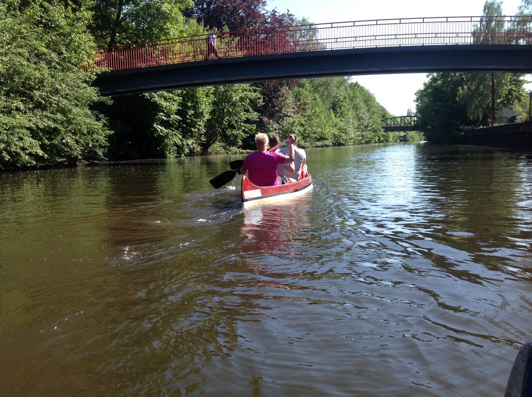 Oder sie paddeln von Bergedorf flussabwärts per Kanu die Dove-/ Gose-Elbe bis runter zum Eichbaumsee zur Regatter-Strecke oder der Tatenberger Schleuse. Traumhaft schöne Strecken.
